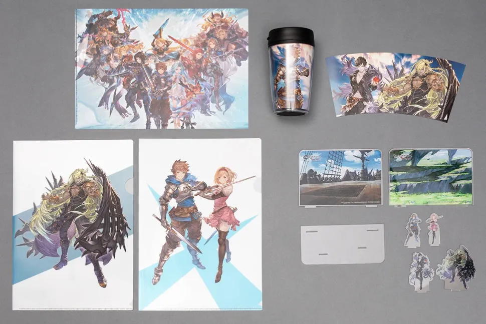 Includes a set of clear file folders, an acrylic diorama stand, a tumbler, and a shopping bag!