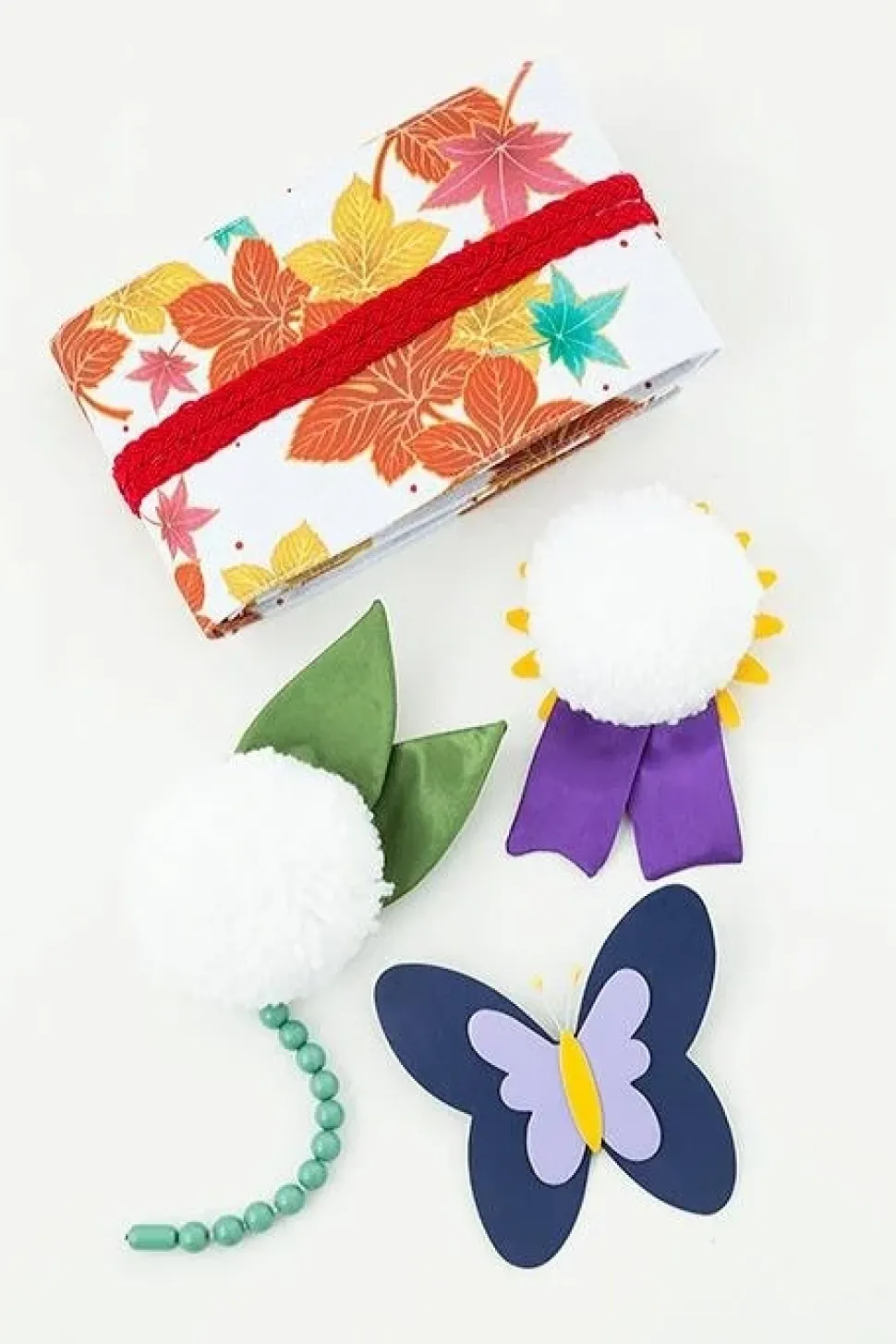 - Hair accessory (100% polyester, synthetic leather)