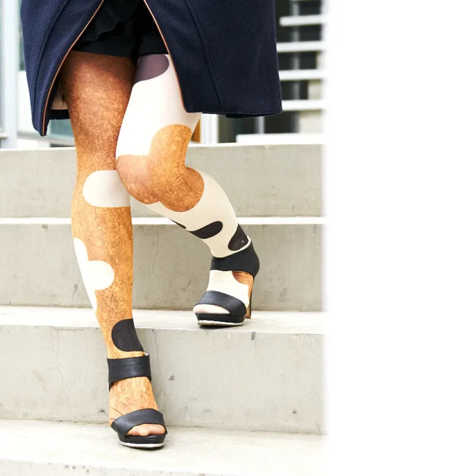 I designed these tights like unsettled clouds inspired by the unwavering charm of cats that grab onto your heart and won’t let go.